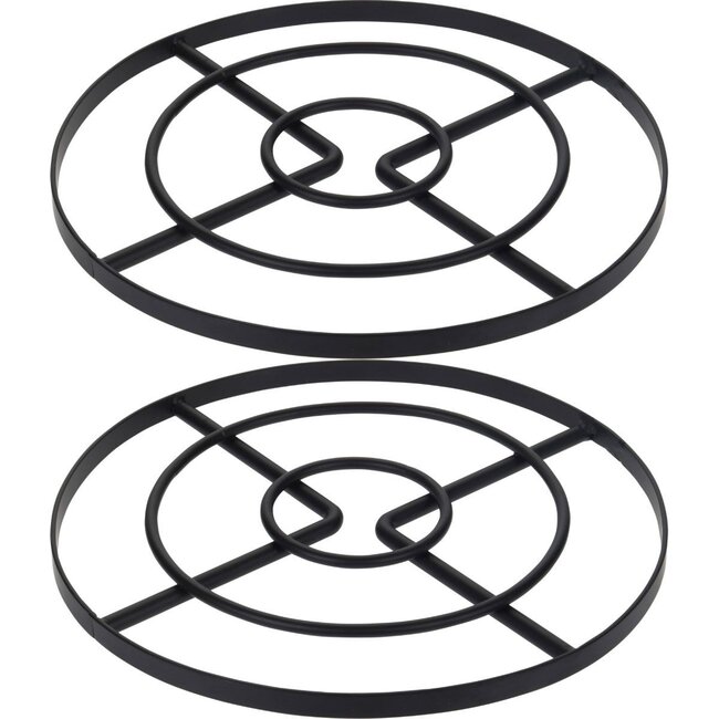 Protect your table or countertop from hot cookware with this set of 2 steel trivets. With a sleek black finish and a 23 cm diameter, they combine both function and style. A must-have for every kitchen.