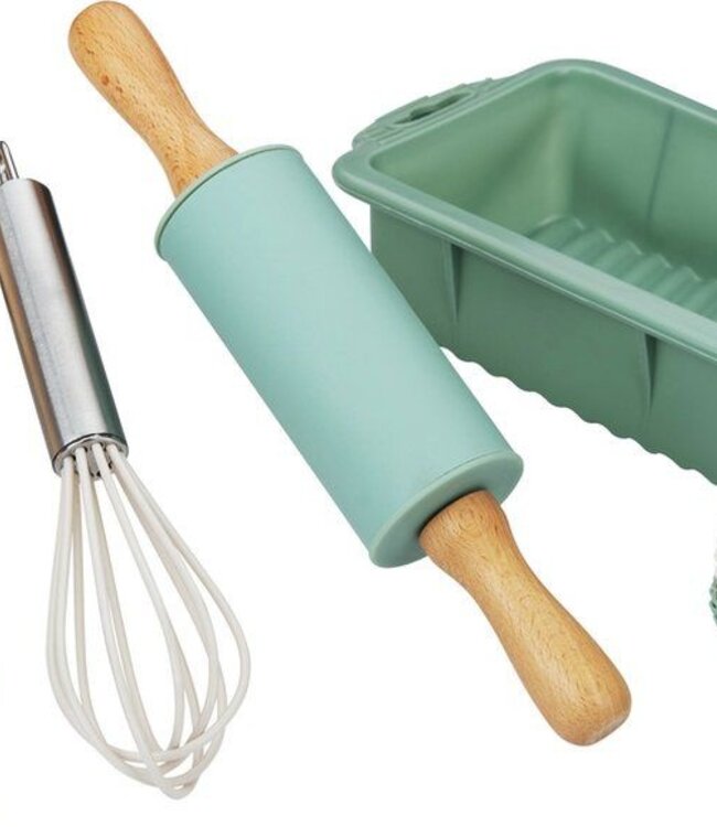 voor kinderen pastelgroen 12-delig: o.a cakevorm, cupcakevormpjes, spatel, deegroller materiaal cakevorm: siliconen Read more.