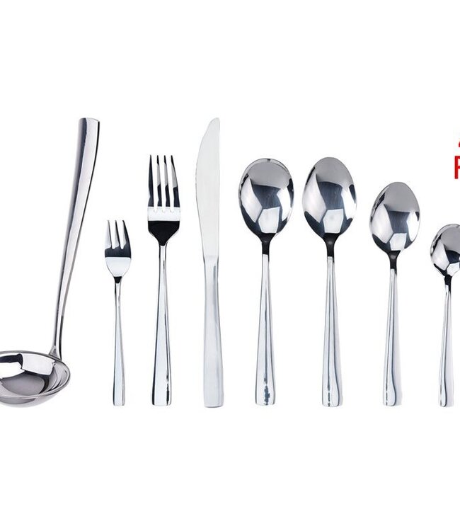Een complete roestvrijstalen bestekset van goede kwaliteit.