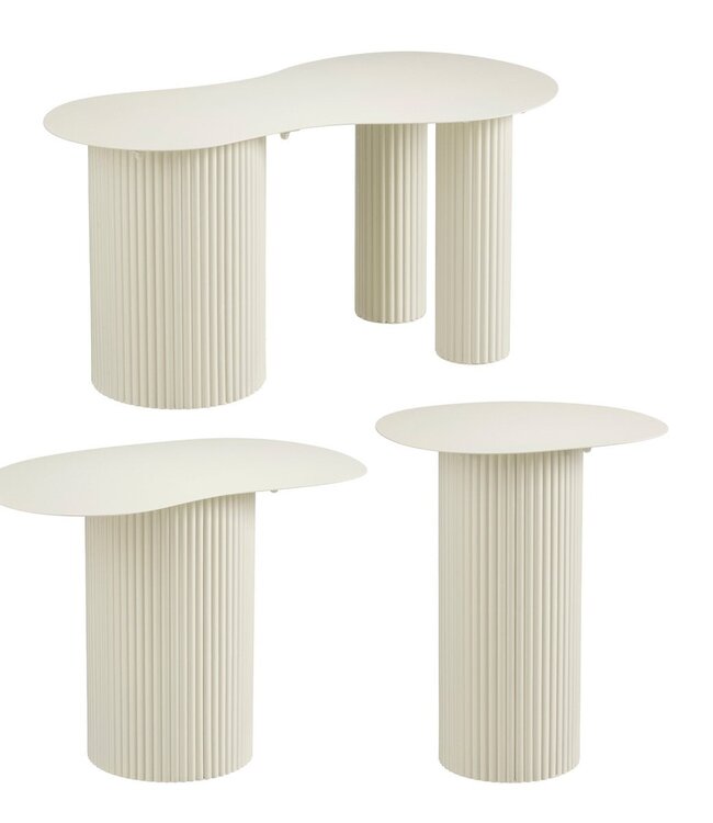 Geef je interieur een zachte, moderne uitstraling met de Lux bijzettafels set van Mica Decorations. Deze set van 3 bijzettafels is gemaakt van ijzer en uitgevoerd in een elegante off-white kleur, wat zorgt voor een rustige en verfijnde look.