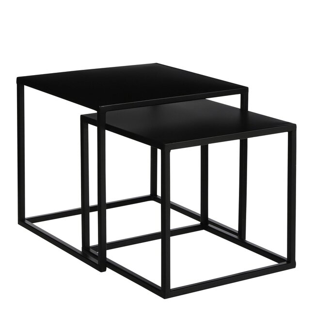 Set van twee bijzettafels van Mica DecorationsPerfect als plantentafel, salontafel of koffietafel Gemaakt van zwart metaal – industrieel! Staan geweldig in iedere woonkamer, eetkamer of zelfs slaapkamerAfmetingen: L30 x B30 x H29 cm en L35 x B35 x H33 cm
