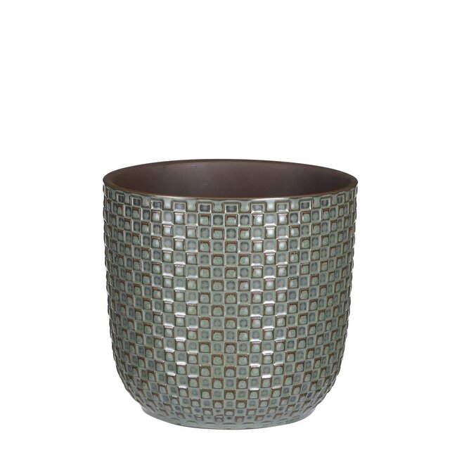 BeschrijvingSpeels vierkantjespatroon voor een opvallende lookSubtiele glans zorgt voor een elegante finishing touchMaakt elk interieur direct levendiger en vrolijkerVerkrijgbaar in meerdere formaten voor speelse combinatiesMooi op zichzelf of in een mix van potten uit dezelfde serieHeeft een hoogte van 17,5 cm en een diameter van 19 cm