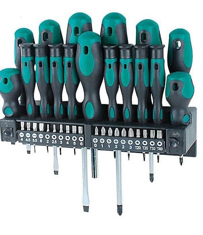 Brüder Mannesmann Schroevendraaier/bitset (37-dlg) Serie Green Line. dus professionele kwaliteit en uiterst nauwkeurig Deze set bestaat uit: .8x werkplaatsschroevendraa... Read more.