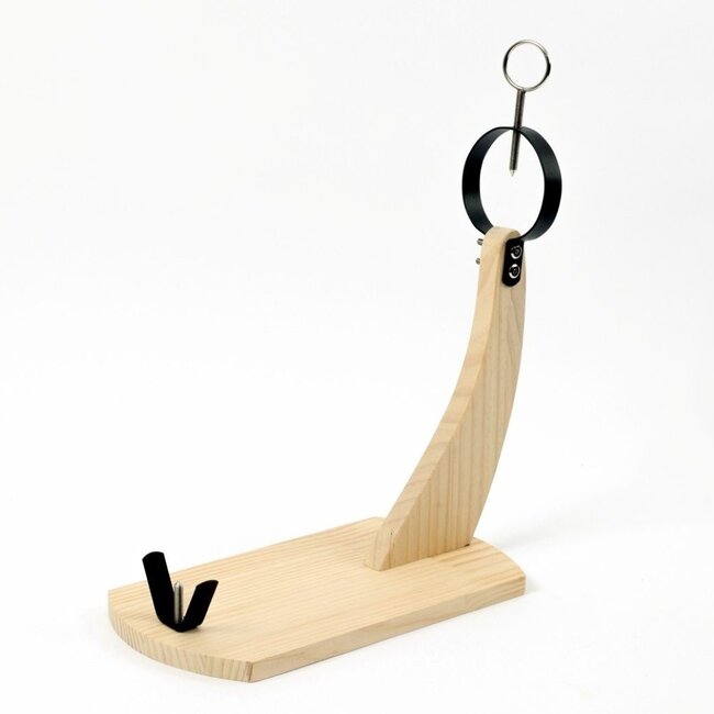 Practical Ceruzo ham holder for Spanish hams weighing 4–9 kg. Made of pine wood and metal, dimensions 40×19×36 cm, easy assembly in just 2 minutes. Order online easily!