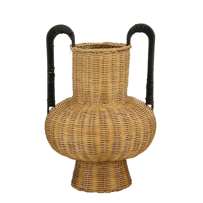 De Loulou decoratieve vaas van Mica Decorations is een prachtige toevoeging aan elk interieur. Deze vaas heeft een unieke, bohemian uitstraling en past perfect in de woonkamer, hal of slaapkamer. BeschrijvingGemaakt van natuurlijk materiaal voor een unieke en bohemian uitstralingSpeelse ronde vorm die direct opvalt in elk interieurVoorzien van opvallende handvatten voor een stijlvol en praktisch detailPerfect te gebruiken als decoratiestuk of gevuld met droogbloemenWarme bruine kleur met zwarte accenten die een natuurlijke en stijlvolle uitstraling gevenGemaakt van rotan en ijzer en met een hoogte van 42 cm en een diameter van 40 cm Gewicht: 1400g kleuren: Bruin