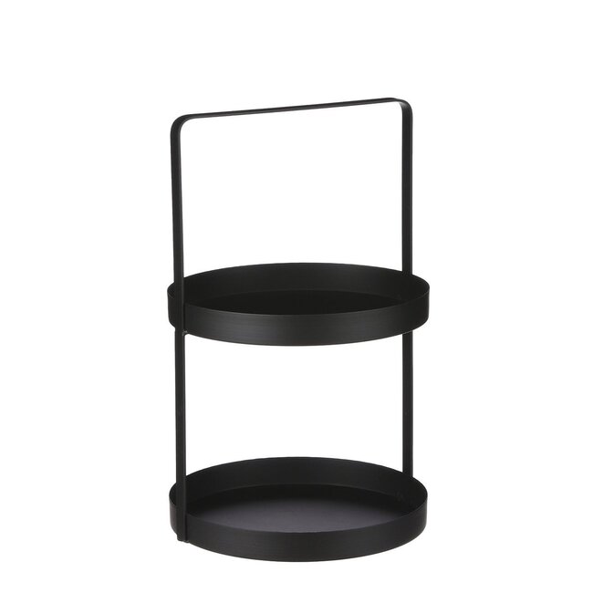 Met deze etagère van Mica Decorations worden jouw hapjes altijd op een mooie manier gepresenteerd. BeschrijvingIdeaal voor high tea of als decoratieve fruitschaalStevige 2-laagse constructie voor optimaal gebruiksgemakModern design dat perfect in elk interieur pastVerkrijgbaar in een elegante, zwarte kleurHeeft een hoogte 41 cm en een diameter van 25 cm Gewicht: 1000g kleuren: Zwart