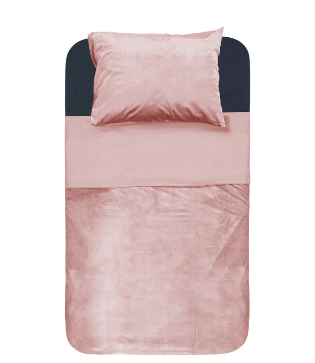 Sleeptime Velvet Piping dekbedovertrek — luxe en zacht. Fluweelzachte velvet-bies geeft een hotelchique uitstraling; subtiele roze tint past in elke slaapkamer. Gemaakt van 100% polyester microfiber met brede velvetband (200 gsm) bovenkant en zachte microfiber onderzijde; totale lengte 220 cm, geschikt voor 200–220 cm dekbedden. Inclusief bijpassende kussenslopen met hotelsluiting en extra lange instopstrook met drukknopen. BSCI- en Oeko‑Tex gecertificeerd, anti‑allergeen, kreuk- en strijkvrij. Makkelijk te onderhouden: wasbaar op 40°C en geschikt voor de droger. Duurzaam geproduceerd en luxe verpakt — geef je slaapkamer direct een warme, stijlvolle upgrade.