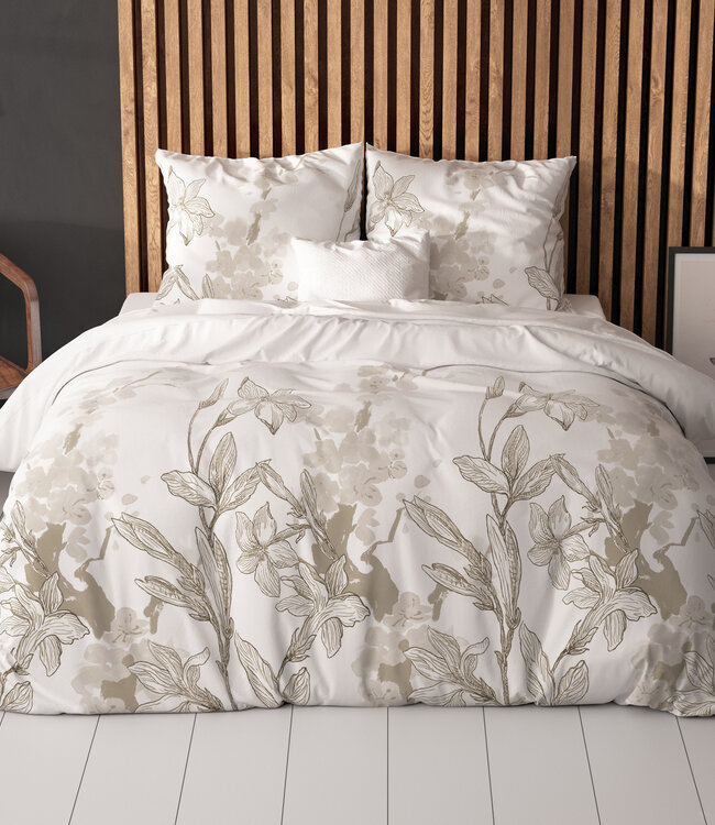 Het Sleeptime Elegance Flynn dekbedovertrek combineert een subtiel bloemen dessin in neutrale tinten met het comfort van 80% katoen en 20% polyester. Zacht, soepel en warmteregulerend — sneldrogend, kreukarm en slijtvast. Compleet met bijpassende kussenslopen (hotelvouw). Voorzien van een extra lange, doorlopende instopstrook van 20 cm en handige drukknopen; afmeting 200 x 220 cm, kussenslopen 60 x 70 cm. Anti-allergisch, wasbaar op 40°C en geschikt voor de droger. Luxe verpakt, onderhoudsarm en ideaal voor volwassenen die stijl en slaapcomfort willen zonder gedoe.