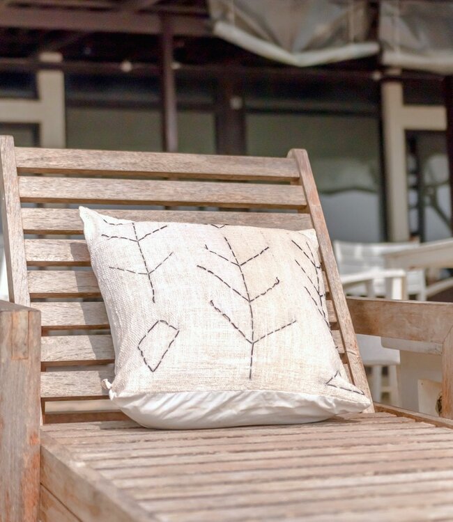Fijne zwarte accenten in de vorm van diamanten en takjes zijn liefdevol geborduurd en geven deze hoes een subtiele uitstraling die gemakkelijk te combineren is met andere kussens en dekens uit ons assortiment. Er zijn geen grenzen aan uw creativiteit!