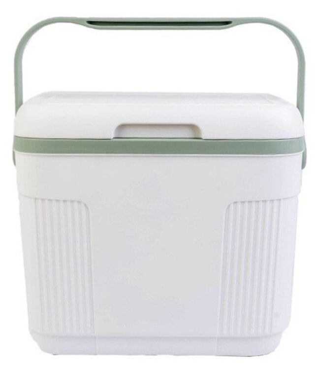 het meegeleverde koelelement is vast te klikken in het deksel buitenmaat: 33 x 23.2 x 29.5 cm binnenmaat: 26 x 16 x 23 cm inhoud: 10 liter kleur: wit met groen materiaal: kunststof (PE + PU + ... Read more.