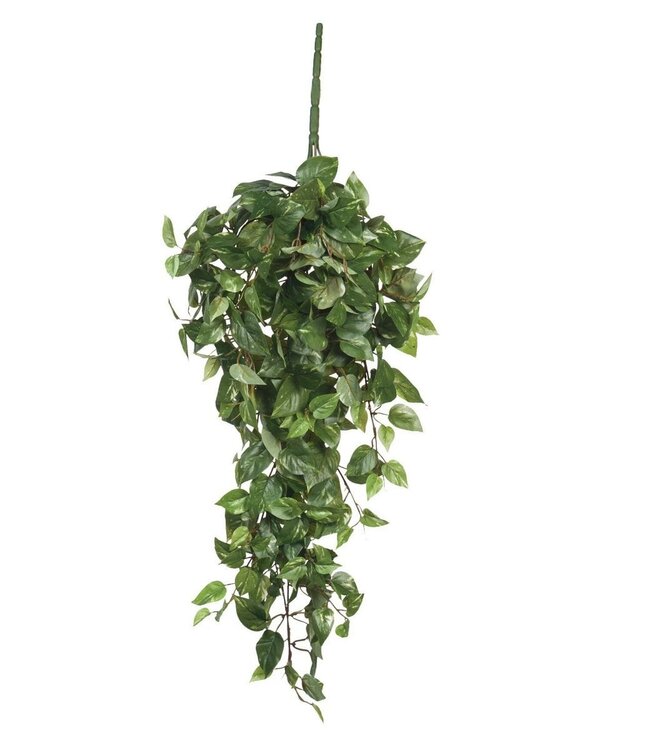 Klaar om zorgeloos te genieten? De kunstplanten van Mica Decorations zijn niet van echt te onderscheiden, maar hebben geen enkel onderhoud nodig. Deze Scindapsus heeft wat grotere bladeren, waarbij het kenmerkende bladpatroon met lichtgroene verkleuringen tot in detail is nagemaakt. Door het blad daarnaast uit te voeren in verschillende groeistadia, wordt het geheel nog natuurlijker. De kunstplant is voorzien van een stevige pin, waarmee je hem gemakkelijk in een bloempot bevestigd. Leuk voor op een kast of voor aan het plafond. Combineer hem met andere kunstplanten en -bloemen uit de collectie en breng meer groen in huis. Deze hangplant is 80 cm hoog. Gewicht: 150g kleuren: Groen, Groen