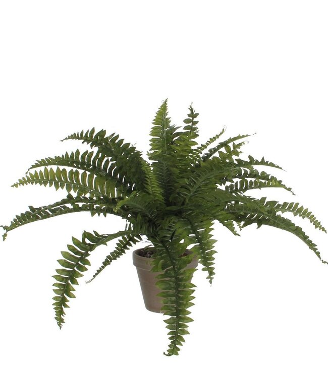 Kunstvaren van H40 x Ø55 cmKenmerkend door de lange, diepingesneden bladerenHet blad is uitgevoerd in verschillende groeistadia Gemaakt van polyester, dus vergt geen enkel onderhoudWordt geleverd in een terracotta bloempot van Ø15,5 cm