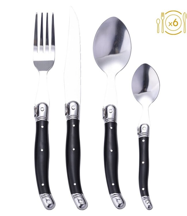 Laguiole - Bestekset 24 delig op houten dienbladen