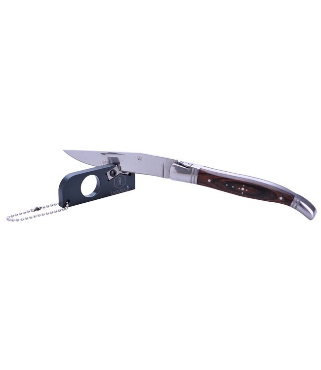 Review Laguiole - Zakmessenset met sleutelhangerslijper - RVS, Pakkahout - Handig voor buitenactiviteiten - Mooie geschenkverpakking - RVS