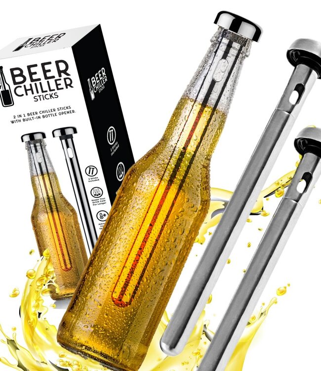 Houd je van bier, maar haat je het als het warm wordt? Dan zijn deze bierflessenkoelers precies wat je zoekt! Deze ingenieuze bierkoelstaven zijn de ultieme grillgadgets die je bier altijd ijskoud houden. Of je nu aan het grillen bent in de tuin, kampeert in de tent of gewoon lekker chillt op de bank, met de bierflessenkoelers van Mad Monkey heb je altijd een verfrissend biertje bij de hand. Elke koelstaaf is gemaakt van hoogwaardig roestvrij staal en heeft aan de binnenkant een speciale koelgel die je bier van binnenuit koelt. Het enige wat je hoeft te doen is het bierstaafje een uurtje in de vriezer te leggen en daarna in je bierflesje te doen. Bovendien heeft elk van je bierprikkers een geïntegreerde flesopener: een echte multitool!