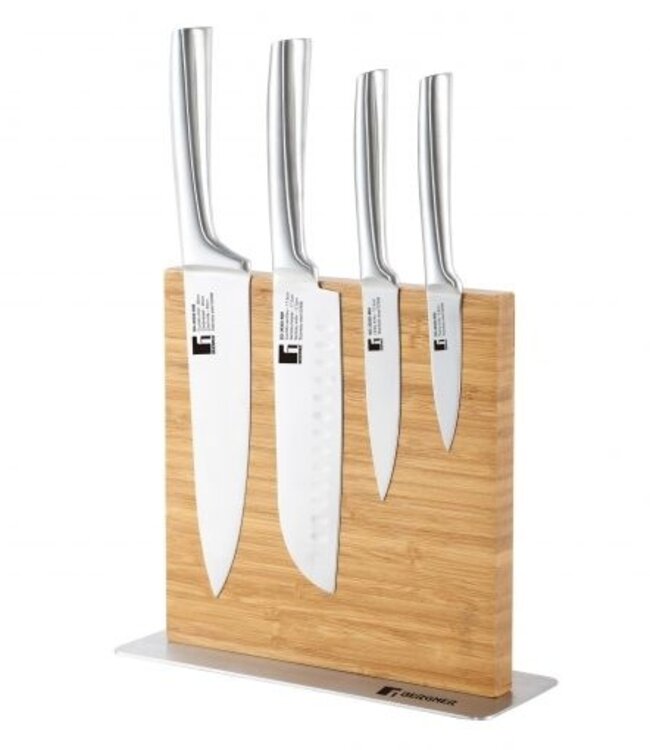 Groente, fruit, vlees en vis, alles kan gesneden worden met deze messenset van Bergner! De set wordt geleverd met een messenblok, zodat je je messen veilig en overzichtelijk kan opbergen.