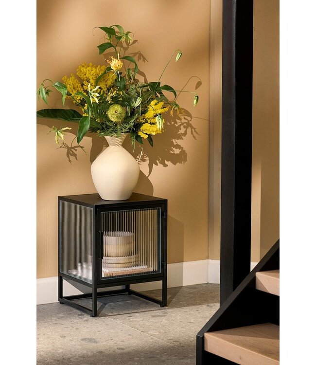 De Clifton opbergkast met deuren van Mica Decorations is een stijlvol kabinet met een moderne twist! Het biedt een handige opbergoplossing voor je slaapkamer, maar is ook geschikt voor andere ruimtes waar je een kleiner opbergmeubel nodig hebt. BeschrijvingCompact kastje met een trendy geribbeld glazen paneeldeur voor een moderne uitstralingPerfect als nachtkastje of opbergoplossing in kleinere ruimtesGemaakt van stevig materiaal voor een stabiele opbergruimteVerstelbare draaipootjes zorgen voor optimale plaatsing op elke ondergrondZwarte kleur die zorgt voor een strakke en tijdloze uitstralingGemaakt van ijzer en glas en met een lengte van 38 cm, een breedte van 35 cm en een hoogte van 50 cm Gewicht: 8000g kleuren: Zwart