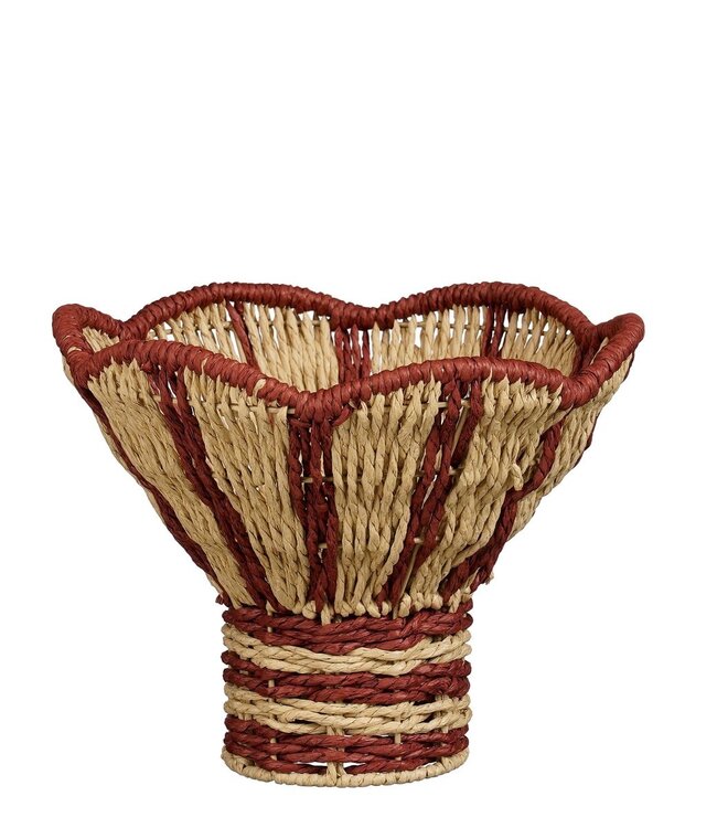 Geef je interieur een warme, ambachtelijke touch met deze decoratieve mand van Mica Decorations. De mand is gemaakt van papier en ijzer en heeft een geweven design in rood en lichtbruin voor een natuurlijke en opvallende look.
