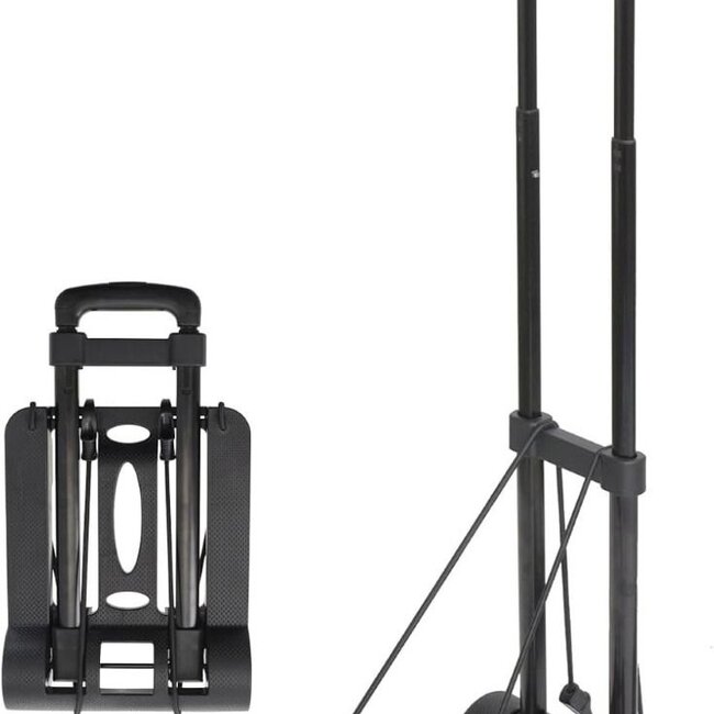 in drie hoogtes verstelbaar: 43 cm, 72 cm en 95 cm met bagagespin voor het vastzetten van bv dozen opvouwbaar telescopisch handvat kunststof wielen materiaal: metaal + kunststof afmeting: 33 ... Read more.