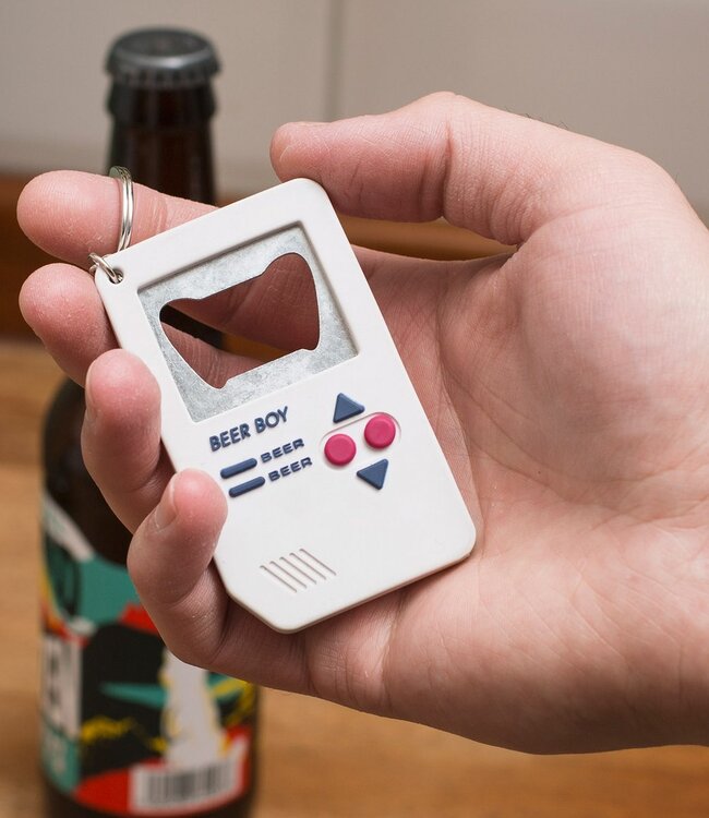 -Flessenopener in de vorm van een retro spel - Sleutelhangerbevestiging Breedte: 4cm Hoogte: 0.8cm Lengte: 7cm Gewicht: 55g