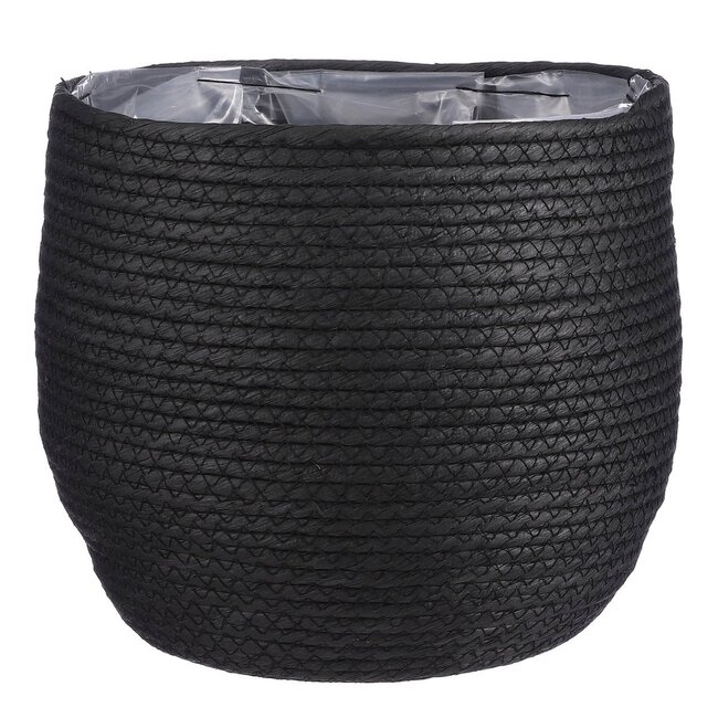 Stoer, stijlvol en natuurlijk: dat is de Jorck mand van Mica Decorations. Zet hem in de woonkamer, hal of slaapkamer voor een opgeruimd en sfeervol geheel. BeschrijvingVoeg moeiteloos een moderne en elegante sfeer toe aan je interieurPerfect als plantenmand of opberger, stijlvol en functioneel!Van woonkamer tot slaapkamer: voor deze mand vind je overal wel een plekjeVoorzien van een voering ter bescherming voor ondergrondenMet een hoogte van 24 cm en diameter van 26 cm Gewicht: 370g kleuren: Zwart