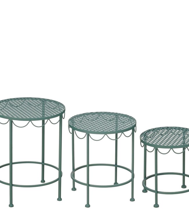 Geef je tuin, balkon of terras een sfeervolle uitstraling met de Marseille plantentafels set van Mica Decorations. De combinatie van het sierlijke ontwerp en de zachte groene kleur zorgt voor een frisse en tijdloze toevoeging aan iedere buitenruimte. Ideaal om planten op verschillende hoogtes te presenteren en zo meer diepte te creëren.