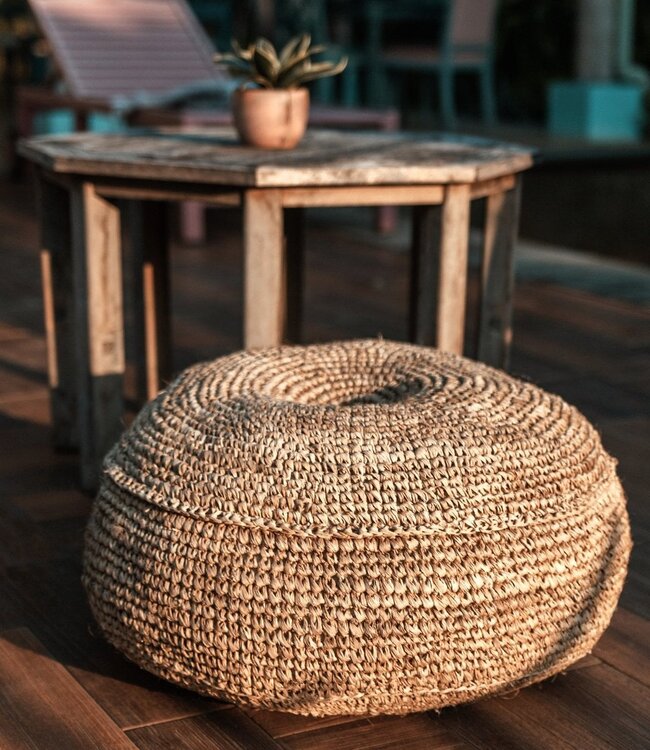Onze poefs zijn gemaakt van plantaardige vezels. Ze ruiken en voelen daarom heerlijk naar de natuur.