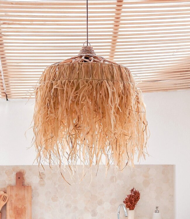 Raffialamp met lange franjes | Lampenkap | Hanglamp KAWI (2 maten)