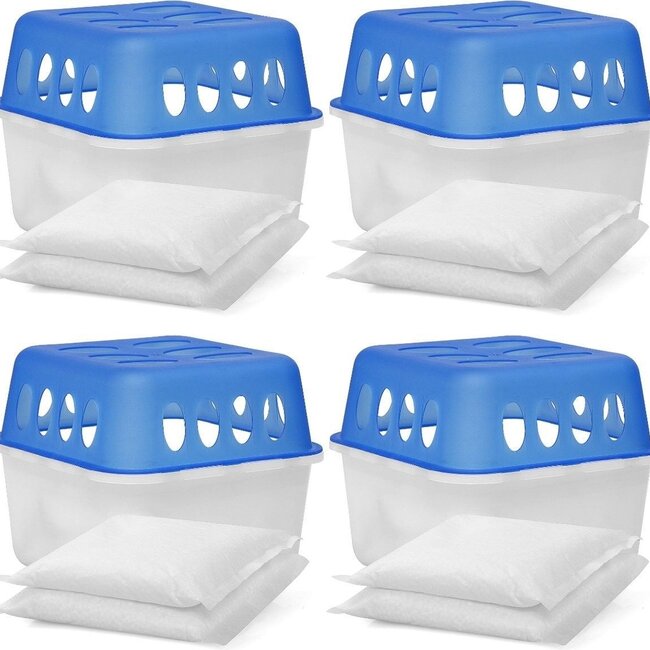 Dimensions per moisture absorber: 13.5 x 13.5 x 11.7 cm.