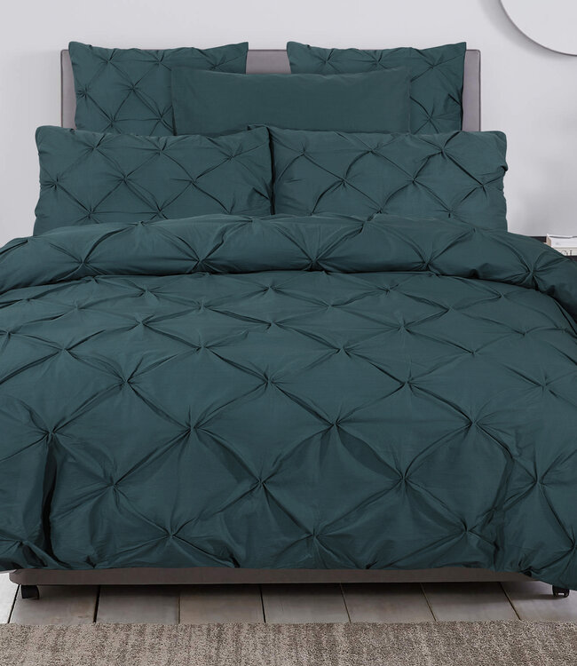 Het Dreamhouse Salvador dekbedovertrek combineert moderne eenvoud met luxe comfort. Het donkergroene pintuck-dessin in 100% katoen (T144 ranforce) voelt zijdezacht, ademend en vochtregulerend aan—ideaal voor een rustige nachtrust. Dankzij de extra lange (20 cm) instopstrook over de gehele breedte en drukknopen sluit het dekbedovertrek netjes af. Inclusief twee kussenslopen (60x70 cm) met hotel‑sluiting (15 cm flap). Afmeting 200x220 cm. Hypoallergeen, duurzaam geweven, kreuk- en strijkvrij; wasbaar op 40°C en geschikt voor de droger. Luxe verpakt en direct klaar om jouw slaapkamer een verfijnde, veelzijdige upgrade te geven.