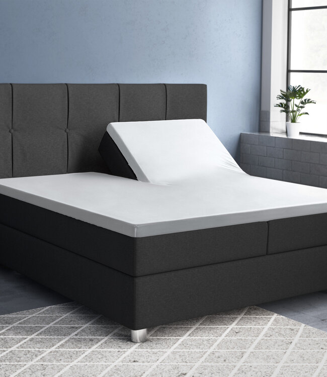 Primaviera Deluxe splittopper-hoeslaken: val comfortabel in slaap op luxueus zacht katoensatijn dat zijdeachtig aanvoelt. De 70 cm diepe split aan het hoofdeinde maakt onafhankelijke verstelling mogelijk — ideaal om te lezen, apart te slapen of medisch het hoofdeinde hoger te zetten. Ademend en vochtabsorberend voor verkoeling in de zomer, slijtvast (T210) en huidvriendelijk: anti-huisstofmijt, anti-allergisch en vrij van schadelijke stoffen. Voor matrashoogte 8–12 cm, hoekhoogte 15 cm, met elastiek rondom. Wasbaar op 40 °C. Verkrijgbaar in diverse kleuren en maten. Een duurzame upgrade voor betere nachtrust.