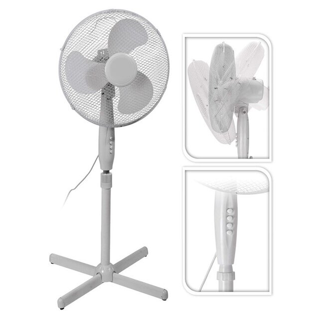Diameter ventilatorblad: 40 cm In hoogte verstelbaar (max. 125cm). Met 3 snelheden Met draaifunctie (stilstaand of zwenkend) Vermogen: 45W. Snoerlengte: 140cm. Read more.