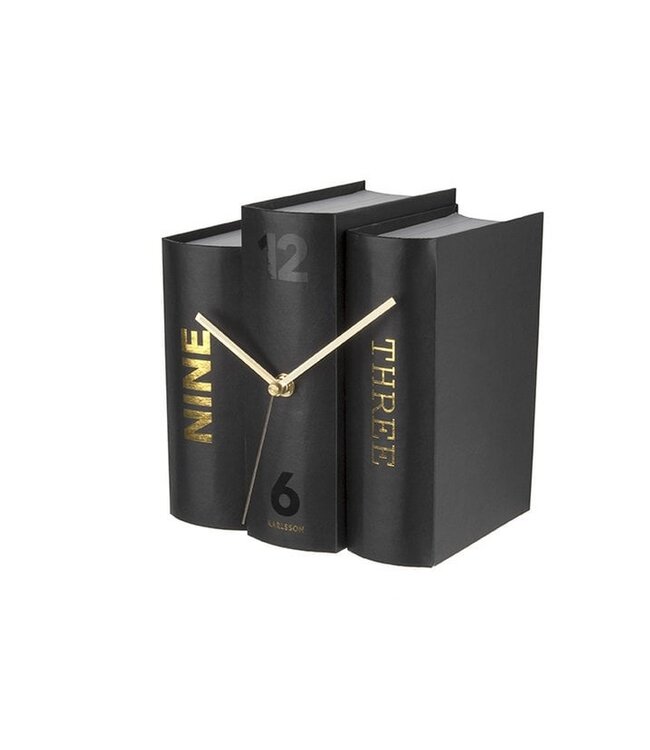 Hallo boekenwurmen! Deze Karlsson klok is nauwelijks te onderscheiden van een set boeken. Het unieke ontwerp van de tafelklok Book uit de Karlsson collectie heeft de vorm van 3 boeken samen. Deze moderne speelse tafelklok, ontworpen door Sjoerd van Heumen voor Karlsson, is verkrijgbaar in 3 verschillende kleuren; grijs, zwart en roze. Een grappige en speelse eyecatcher op je bureau of in de boekenkast. Breedte: 20cm Hoogte: 20cm Lengte: 0.21cm Gewicht: 56g kleuren: Zwart, Zwart