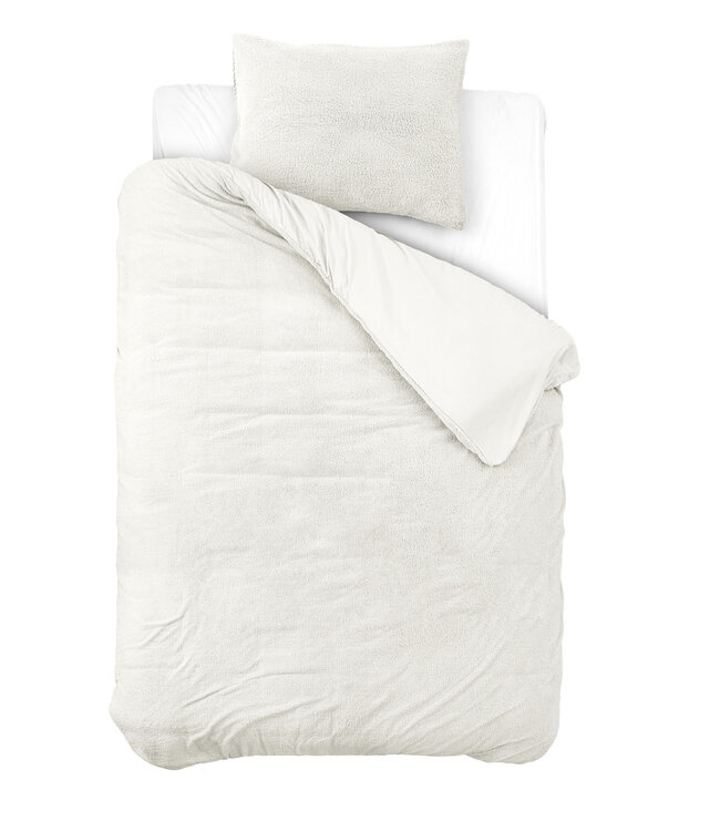 Sleeptime Teddy dekbedovertrek — ultiem zacht en heerlijk warm. Gemaakt van luxe teddy-stof (100% teddypolyester) voor een knuffelbaar, cosy gevoel en een neutrale witte kleur die makkelijk combineert met elke slaapkamer. Afmeting 140×220 cm (totale lengte 220 cm). Voorzien van drukknopen en kussenslopen met hotelsluiting. Anti-allergisch, kreuk- en strijkvrij, machinewasbaar op 40°C en geschikt voor de droger. Ideaal voor wie warm en luxe wil slapen zonder gedoe — tijdloos comfort met hoogwaardige, gecertificeerde materialen.
