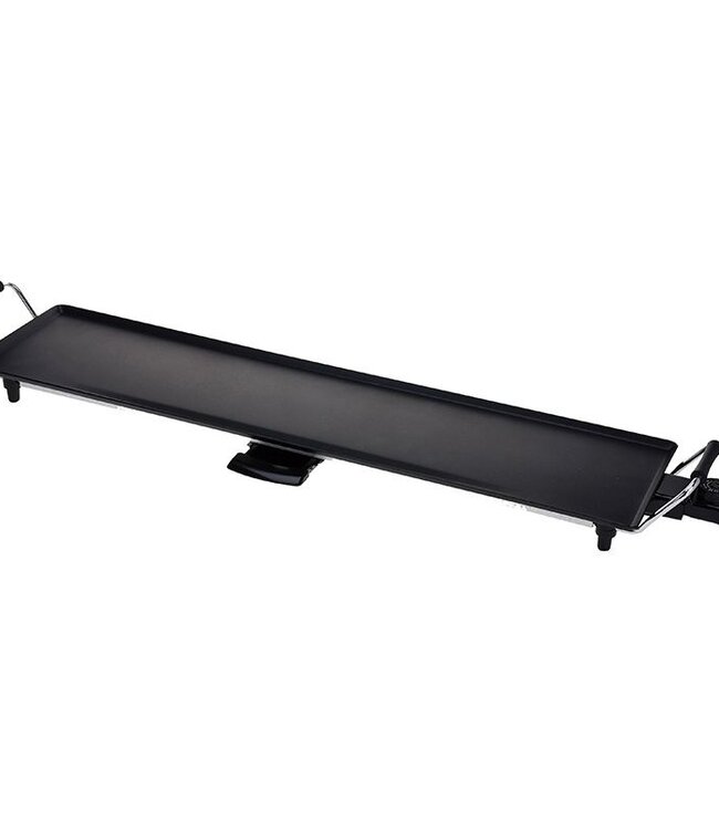Een enorme teppan yaki grillplaat, van maar liefst ca. 87x22cm Compleet met lekbak en thermostaat Met anti-aanbaklaag Snoerlengte ca. 85cm 1800W Read more.