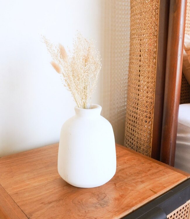 Vaas Witte kleine ronde decoratieve vaas voor gedroogde of verse bloemen, handgegoten uit klei met BAWA