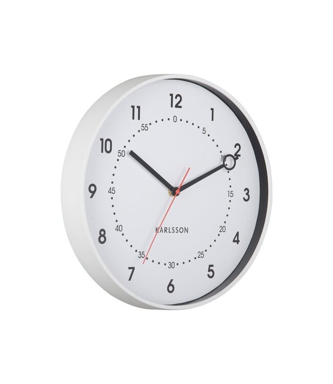 Minimalist, but full of character. The Fresco wall clock by Karlsson is a textbook example of Scandinavian design: sleek, businesslike and with an eye for detail. The subtle accents in the dial and the minute hand provide a surprising twist. Thanks to its understated design, this clock fits effortlessly into a modern workspace, kitchen or hallway. Diameter: 32cm Gewicht: 68g kleuren: Wit