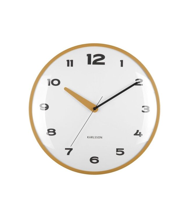 Stroom koepel, strak ontwerp met een subtiele elegantie. De stevige koepel wandklok van Karlsson maakt deel uit van een stijlvolle reeks klokken. Met zijn koepellens en verfijnde ontwerphanden straalt het de tijdloze klasse uit. Ontworpen door interne ontwerper Armando Breeveld, past deze klok moeiteloos in elk interieur. Een perfecte combinatie van functionaliteit en ontwerp! Diameter: 40cm Gewicht: 114g kleuren: Geel