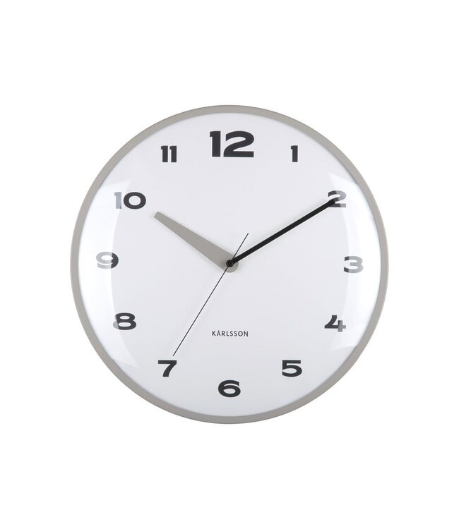 Stroom koepel, strak ontwerp met een subtiele elegantie. De stevige koepel wandklok van Karlsson maakt deel uit van een stijlvolle reeks klokken. Met zijn koepellens en verfijnde ontwerphanden straalt het de tijdloze klasse uit. Ontworpen door interne ontwerper Armando Breeveld, past deze klok moeiteloos in elk interieur. Een perfecte combinatie van functionaliteit en ontwerp! Diameter: 40cm Gewicht: 114g kleuren: Grijs