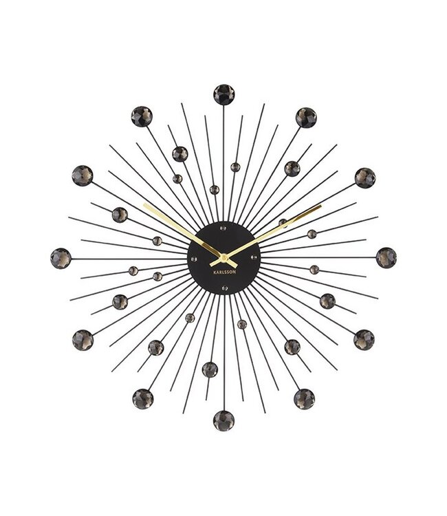 Is het een klok? Ja, maar de Sunburst-wandklok van Karlsson is meer. De moderne klok heeft zo’n mooi design dat hij als decoratieve blikvanger aan de muur werkt. Het expressieve, aparte ontwerp van wandklok Sunburst van Karlsson maakt indruk met zijn glanzende kristallen. Klok Sunburst is verkrijgbaar in 2 maten en 3 kleuren. Karlsson wandklok Sunburst is de perfecte keuze als je op zoek bent naar een vleugje glamour in huis. Ga voor een vleugje bling bling met wandklok Sunburst. Afmetingen: doorsnede 50 cm. Geleverd zonder 1 AA-batterij. Karlsson klokken en wekkers zijn wereldwijd favoriet. Breedte: 50cm Hoogte: 50cm Diameter: 50cm Gewicht: 95g kleuren: Zwart, Zwart