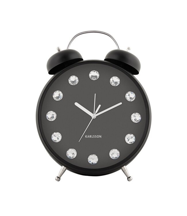 De Glam Diamonds wekker van Karlsson is voor de echte luxe katten. De glanzende buitenkant en diamanten rond de wijzerplaat geven hem de ultieme glamoureuze look en feel. Wakker worden vol glamour met de Glam Diamonds wekker van Karlsson! Breedte: 24cm Hoogte: 31cm Lengte: 24cm Gewicht: 90g kleuren: Zwart, Zwart