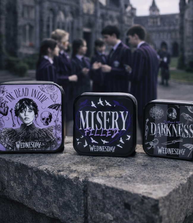 Met de "Wednesday Misery Snack Pot Set" breng je donkere elegantie in je snacktijd! Perfect voor die dagen waarop je duistere gedachten en smakelijke weetjes wilt delen - of gewoon om je Addams Family-collectie uit te breiden. Deze Snack Pot Set is niet alleen een statement van uw unieke smaak, maar ook een praktisch accessoire voor elke donkere gelegenheid. Trakteer uzelf op een andere snackervaring en laat de wereld zien dat er zelfs in het donker een vleugje stijl is! Breedte: 11.8cm Hoogte: 5.3cm Lengte: 11.8cm Gewicht: 654g