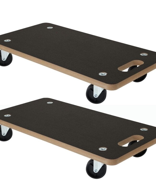 2 stuks transport trolley anti slip bovenzijde 4 zwenkwielen, diameter 7 cm met handvat afmeting: 59 x 29 cm dikte: 18 mm max. draagvermogen: 250 kg robuuste kwaliteit: 3.4 kg per stuk mate... Lees meer.