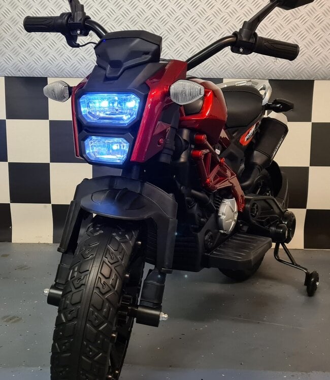 Accu kindermotor Grom superbike, houdt uw kind van snelheid en motoren? Met deze elektrische kindermotor superbike kan hij/zij lekker thuis rondscheuren. Door de zijwielen die deze Kindermotor Grom heeft, zit uw kindje stevig op de kindermotor. De kindermotor is in kleur Metallic Rood gespoten en eva wielen!
