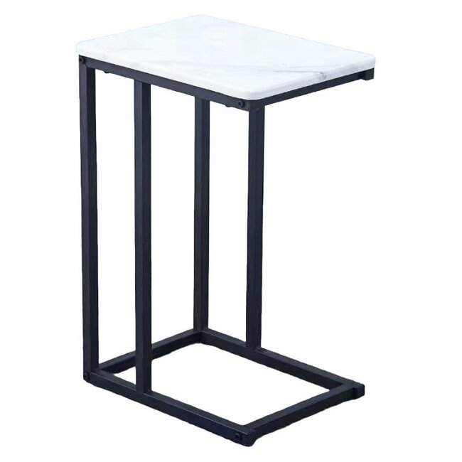 Stijlvolle bijzettafel met zwart metalen frame en wit gemarmerd MDF tafelblad. Compact, stevig en eenvoudig te monteren. Ideaal als banktafeltje of decoratief tafeltje. Lees meer.