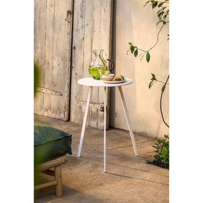 Geef je buiten- of binnenruimte een stoere, industriële look met de Seatle bijzettafel van Mica Decorations. Gebruik hem naast een stoel of bank als bijzettafel of zet hem in een hoek met wat leuke decoratie. Er is zo veel mogelijk! BeschrijvingMinimalistisch design dat een stoere, industriële uitstraling geeftVeelzijdig inzetbaar als bijzettafel of decoratieve standaardSlanke poten zorgen voor een licht en elegant silhouetCompact formaat dat eenvoudig overal in huis of buiten pastWitte kleur die een frisse en moderne touch toevoegtGemaakt van ijzer en met een hoogte van 58 cm en een diameter van 38 cm Gewicht: 1030g kleuren: Wit