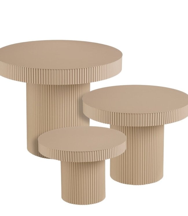 Het ronde ontwerp met subtiele verticale ribbels geeft de tafels een speels maar strak karakter. Ideaal om te gebruiken als bijzettafel, salontafel of presentatieplek voor decoratie.