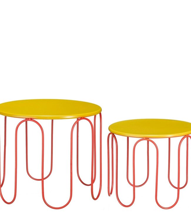 Met de Dione bijzettafel set geef je jouw interieur een gedurfd accent! Zet ze bij elkaar als duo of verspreid ze door het huis om in verschillende ruimtes wat kleur toe te voegen. BeschrijvingSet van twee tafeltjes met een gedurfd design voor een opvallend accent in je interieurVeelzijdig te gebruiken als duo of apart in verschillende ruimtesStevig ontwerp dat eenvoudig schoon te maken isCompact formaat dat perfect past in hal, slaapkamer of woonkamerKleurencombinatie van geel en oranje die warmte en levendigheid toevoegtGemaakt van ijzer met de afmetingen H39,5 x Ø46 en H32 x Ø38 cm Gewicht: 4100g kleuren: Geel
