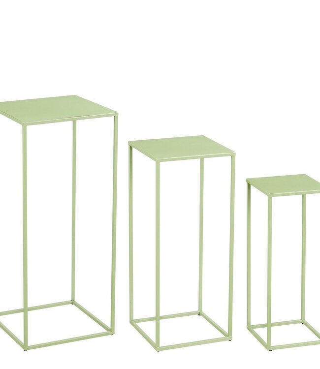 Fris, functioneel en stijlvol: de Quinty bijzettafels van Mica Decorations maken elke ruimte compleet. Deze set van drie vierkante bijzettafels is uitgevoerd in een lichtgroene kleur en heeft een strak, modern ontwerp. Ze zijn gemaakt van stevig ijzer en passen moeiteloos in verschillende interieurstijlen, van minimalistisch tot speels. Ideaal naast de bank, als plantentafel of voor het uitstallen van decoratieve objecten. De set bestaat uit drie tafels met verschillende hoogtes: L20 x B20 x H50 cm, L25 x B25 x H60 cm en L30 x B30 x H70 cm. Gewicht: 4000g kleuren: Groen