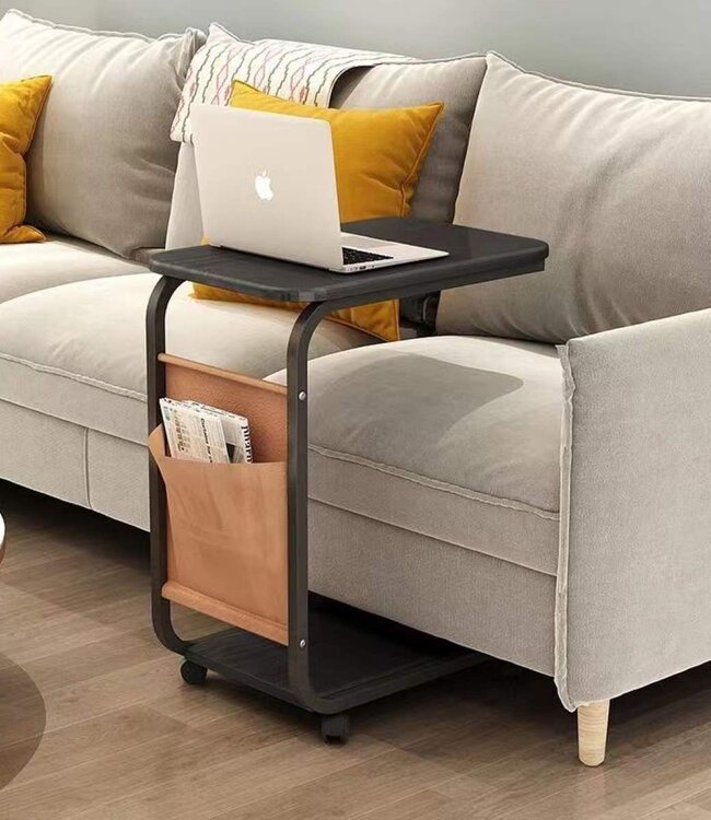 verrijdbare sidetable, bijzettafel, banktafel met 4 zwenkwielen waarvan 2 met rem met een stoffen insteekvak door de vormgeving is de bijzettafel makkelijk aan de bank te schuiven materiaal fra... Lees meer.